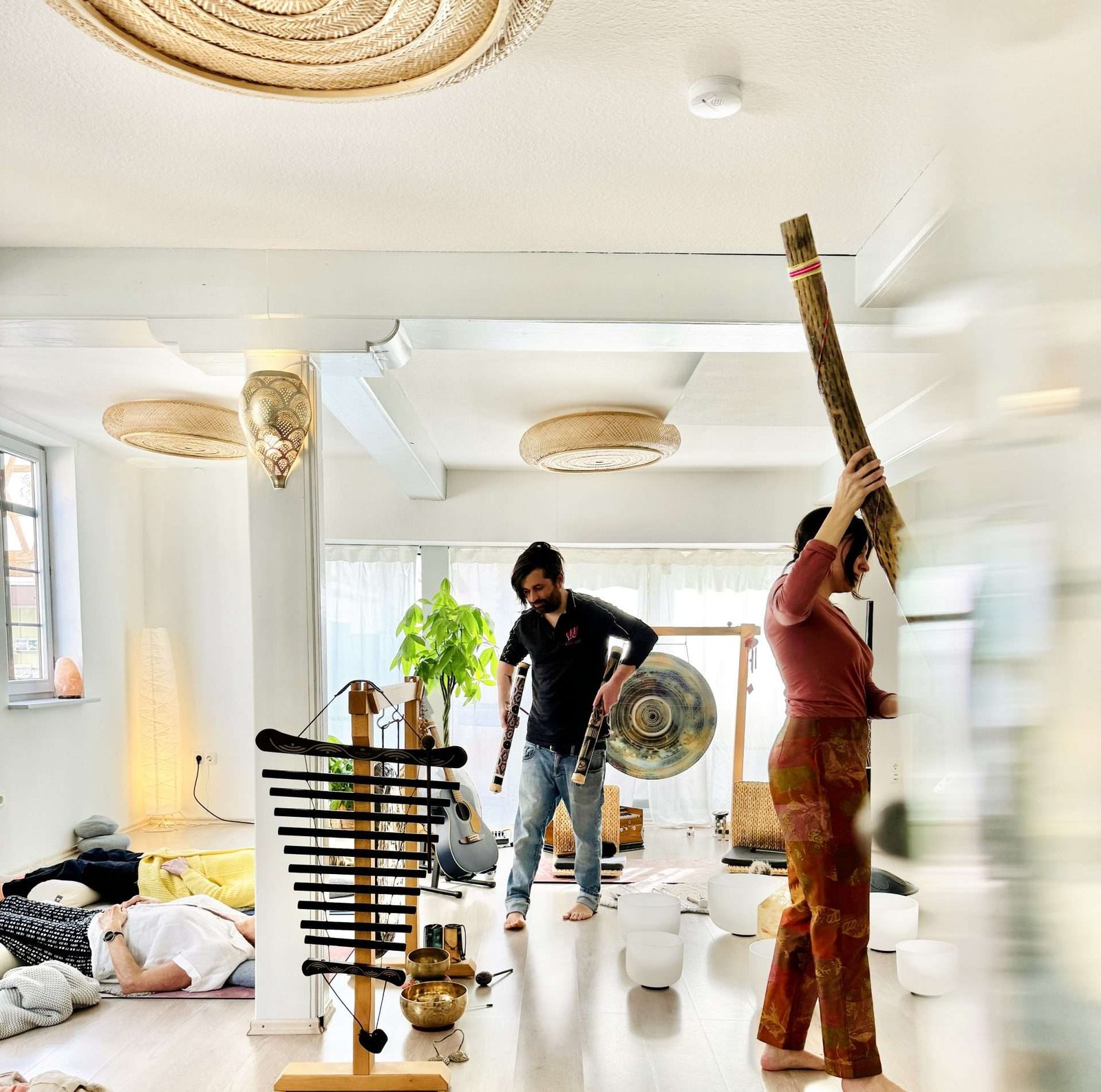 Ob durch die sanften Schwingungen von Kristallklangschalen, die meditativen Töne der Handpan oder die heilsame Kraft der Stimme – Manou und Scott schaffen ein geschütztes Feld, in dem Entspannung, Loslassen und tiefe Regeneration möglich werden.